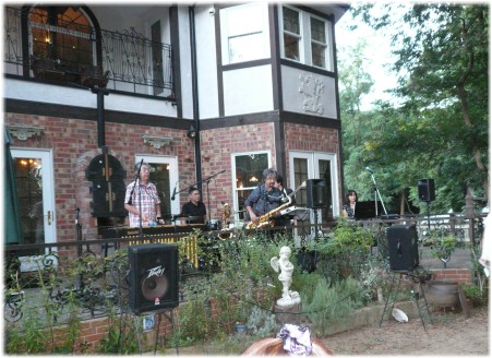 ジャズメンの熱演のあとはお食事パーティー、そこへ、なんとポニーのピンキーがオーナー夫人とともに現れご挨拶。こんなコンサートって、珍しいんじゃない・・・・? そう、仲間の活躍の主役は、アーチストもさりながら、ここではポニーと、オーナー夫人A.Eさんと、丹精込めた手作りのマイハウス。