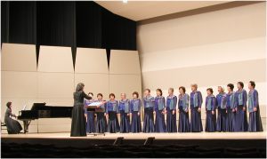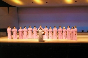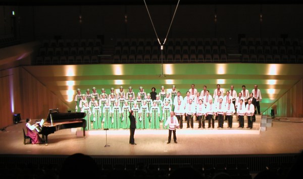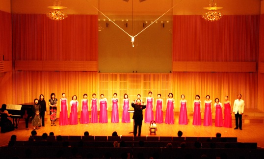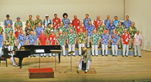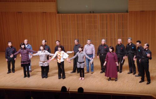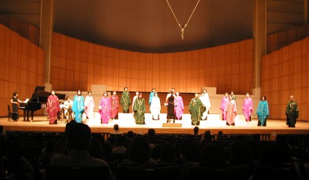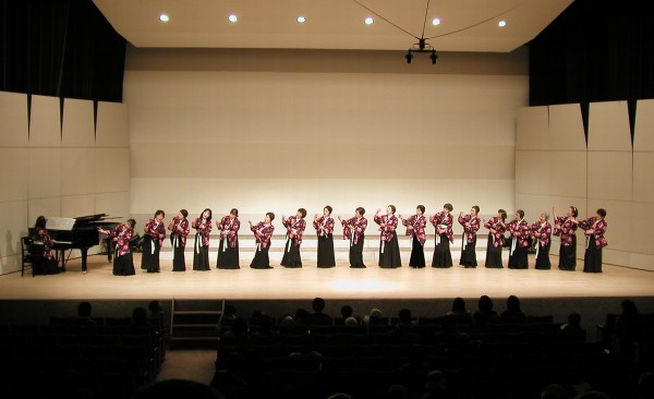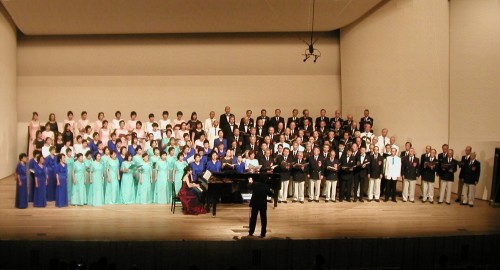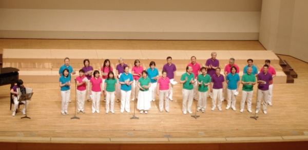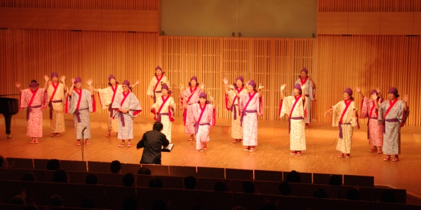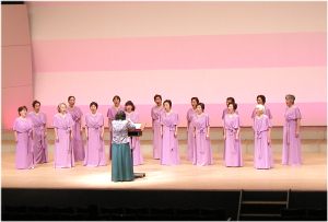 フランス・イタリー・・・・ロシア、世界各地の曲を歌って今年は「日本の歌」。2011.9.19アミュゼ柏クリスタルホールでの締めくくりは沖縄の曲でした。衣装もきっちり揃って大拍手。指揮:野村秀美先生。