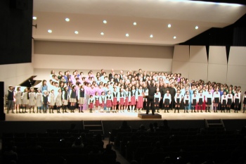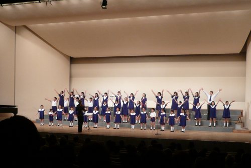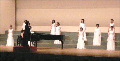 「小学一年生から高校生まで」を掲げる歌声が、2010年12月12日、守谷市中央公民館ホールに響きました。第1部はオペレッタ「白雪姫」、第2部はフルートアンサンブル「もりの笛」が友情出演。第3部クリスマスメドレ−(写真↓)で締めくくり。