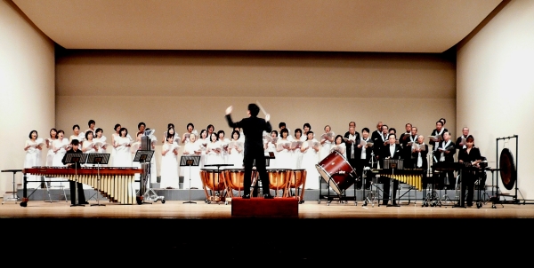 伴奏は打楽器20種だけのアンサンブル、と言う混声4部の新曲「コスモフラワー」全5楽章25分の演奏で始まったコンサート。さらにサウンドオブミュージックとシューマン「ミサ・サクラ」の大曲。