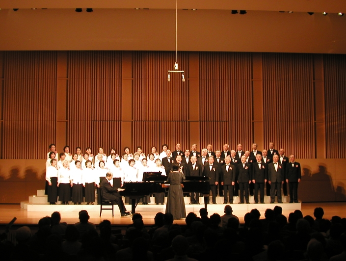 JORDAN会の仲間、フロイデ(柏市)がコンサートを開催、柏市民文化会館の大きな会場を埋め尽くしたお客様とのひとときを過ごしました。第4ステージでの松下耕「秋の風」は新曲、世界初演の由。 (2008.10.11 午後2時開演)